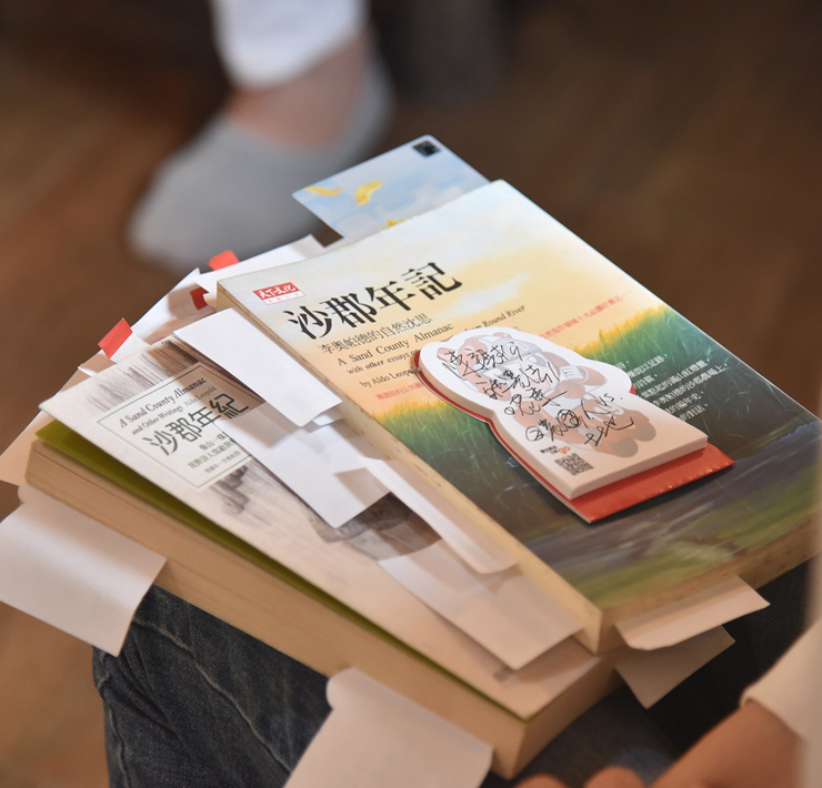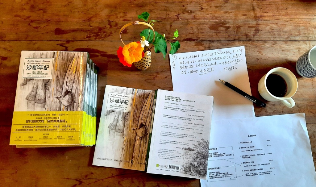 我想把這種閱讀時「與書切合」的感覺與書友分享,於是舉辦了晨讀會,四月時特別選了跟自然、土地、生命有關的書籍,並請來了資深重度閱讀友人馬萱人小姐來當伴讀與引書人。我們選了大家不陌生,在國際上也有相當高度,在台灣卻沒被一直傳頌的《沙郡年紀》。