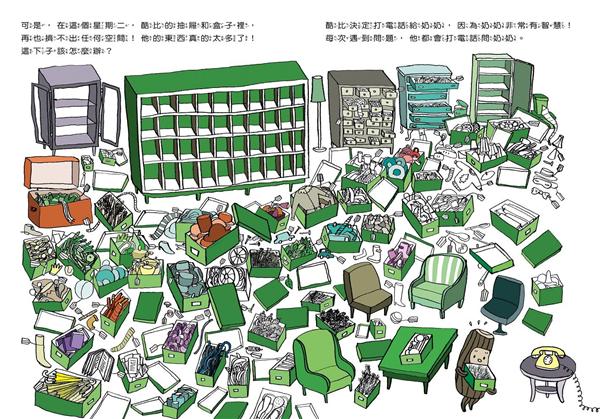 酷比花了好多的時間和力氣,收集了許許多多的物品。但他滿滿的盒子和抽屜裡,再也擠不出多餘的空間了,他該怎麼辦呢?