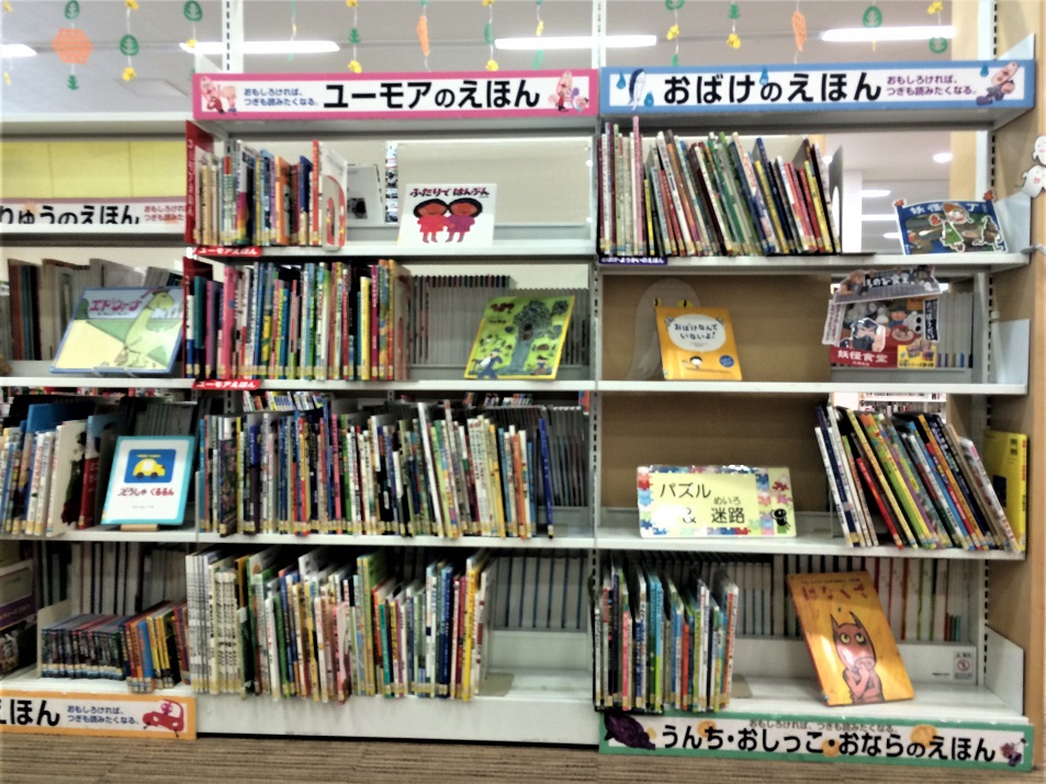 回到圖書館本身,兒童區佔了三樓將近一半的空間,另設有單獨的說故事空間。這裡的說故事還有分齡,分為嬰幼兒以及幼兒和小學。書籍的分類也特別用心,有一區是尺寸小的繪本,其他還有民間故事繪本、鬼的繪本、幽默繪本、季節繪本、恐龍繪本、交通工具繪本、迷宮拼圖等遊戲繪本、屎尿屁繪本等等,對小讀者更友善的主題分類。