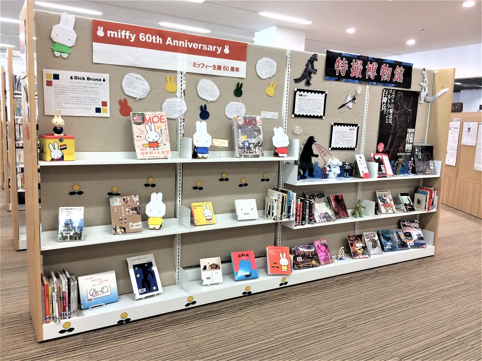 這裡是我看過書籍小展示數量屬一屬二的圖書館。除了主展牆兩面皆有展示之外,書架上也有許多不同主題的小書展。這個圖書館特別重視藝術,在主展牆的其中一面同時展示了書籍與繪畫,角鋼架加上洞洞板的組合可以讓佈展更為靈活。