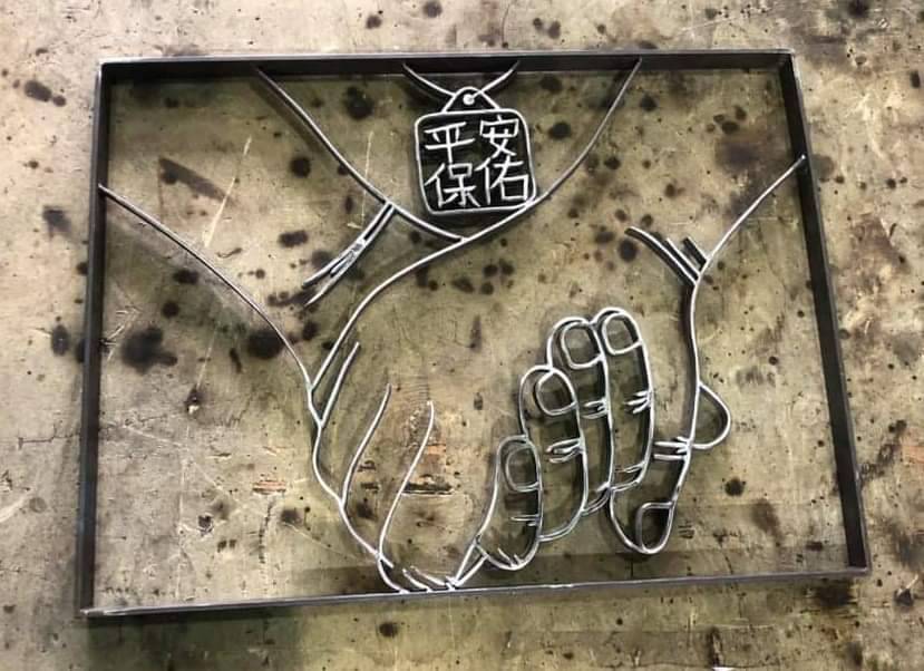 想起在板橋文昌街辦舉的市集中,曾看到鐵花窗職人曾文昌老師來設攤,曾老師教大家一起彎折造型、使用焊槍、螺絲組裝……玩出美麗的鐵花窗(圖13),創作一個專屬於的,獨一無二的窗花,就讓我們找尋身邊不同的媒材來進行一場不一樣的創作吧!