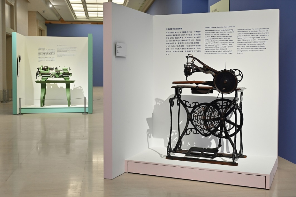 第二主題「縫紉機」。外型華麗精緻的骨董縫紉機,讓人遙想當年它在婦女們的巧手運作下,帶來不可忽視的女性經濟力量。現場陳列手搖、腳踏等不同時期的縫紉機,其中有一台相當罕見的展品,專家推測是從手搖到腳踏式的過渡期機型,記錄了機器隨社會需求與科技進步而逐漸改良的過程。而退休的縫紉機如何新生?