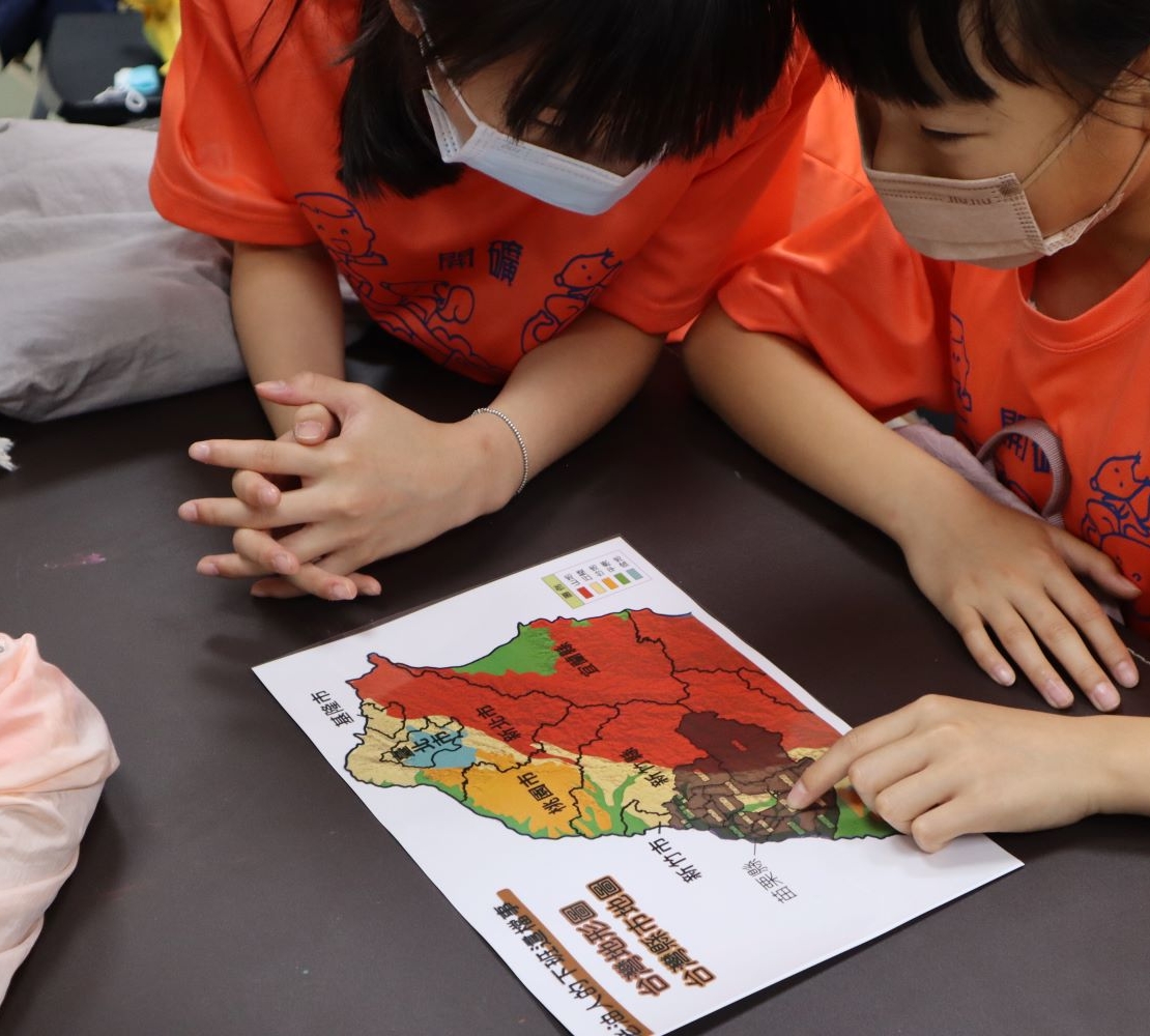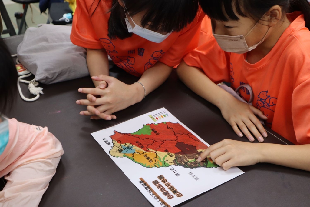 國小課程分為室內課程與室外課程兩個部分。首先,室內課程以地形圖跟學生討論出磺坑聚落形成的原因,透過疊圖的教具來引導學生思考:出磺坑地處丘陵地帶,為什麼會有聚落在此形成?開啟他們的學習動機。