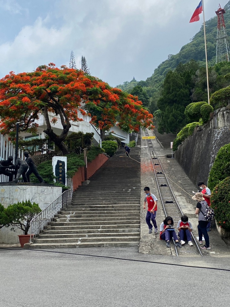 正逢學校的畢業季,出磺坑滿開的鳳凰花也陪伴著學生一起進行一整天的現地教學課程,讓不少學生都留下深刻的印象。期待這一群國中畢業生在經過這樣的課程後,能對出磺坑有更多的認識,對家鄉的文化資產也有更深的情感連結。