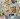 以蠟筆在圖畫紙上畫上大小及各式顏色的花朵和葉子。