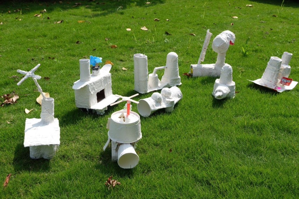小典藏到訪當日適逢羅厝國小學生參訪,雖是炎夏,但在美術館看于軒的「克萊因.赫茲」虛構場景,有種外星空間奇幻感,而下午創作作品則真實引導孩子們創造出天馬行空的世界。