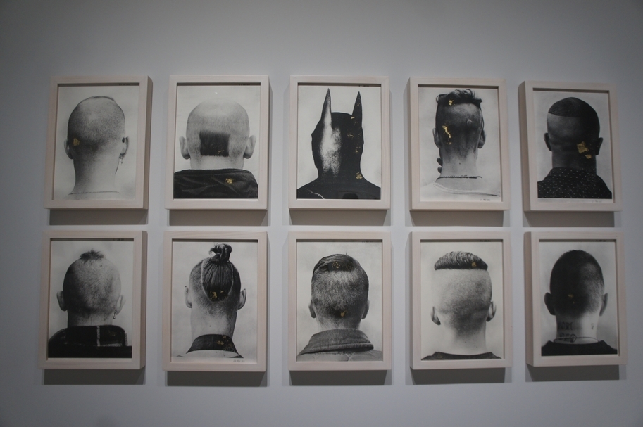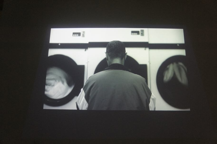 除了近看人的後腦勺,藝術家也稍微拉遠距離,用影像記錄背影所在的地方,比如洗衣店、鐵門前面、超市、街頭等等,這樣一來,或許更讓人好奇,這個人為什麼在這裡?正在做什麼?