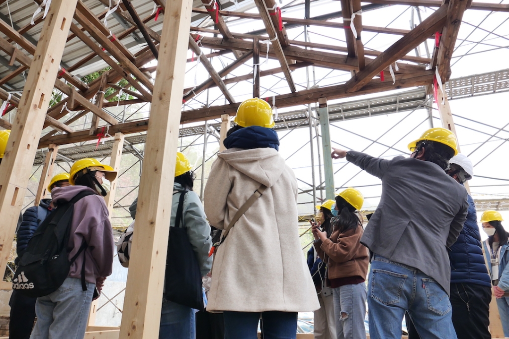 第二天接下來的時間則是由中原大學的黃玉雨老師帶學員實地踏查整個出磺坑聚落,更走到出磺坑地區的信仰中心─出磺坑城隍廟,讓學員了解城隍廟與石油開採的關係。另外還邀請朝陽科技大學的邱建維老師帶學員參觀日式宿舍的修復現場,第一次戴上工地安全帽的學員們都非常興奮,十分認真的聽老師說明建築修復的細節。