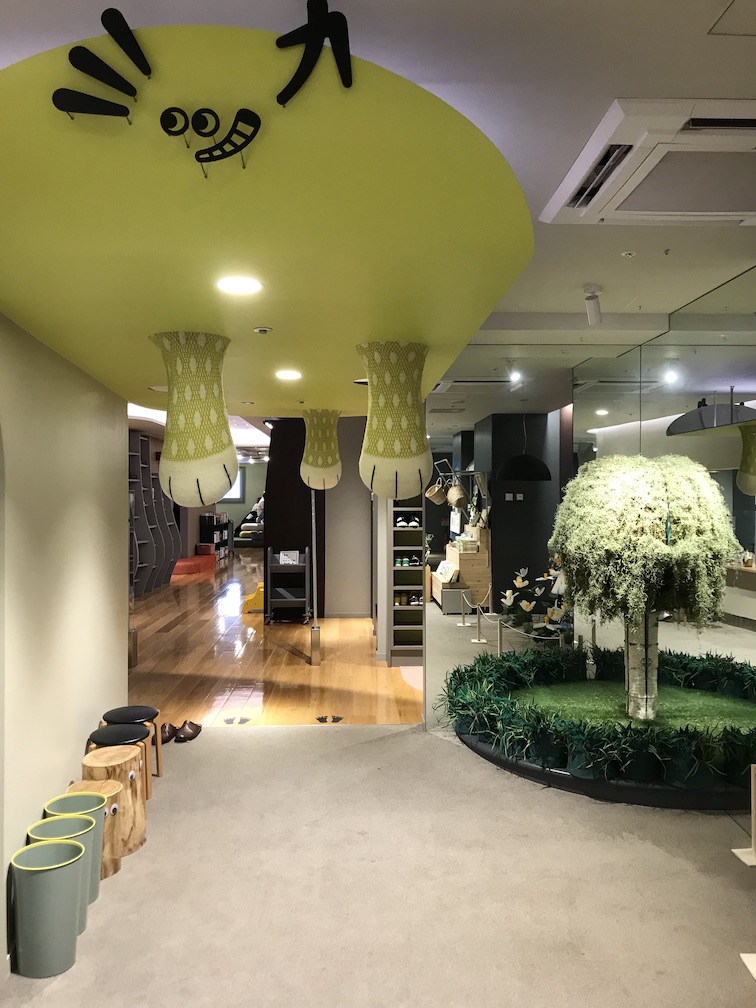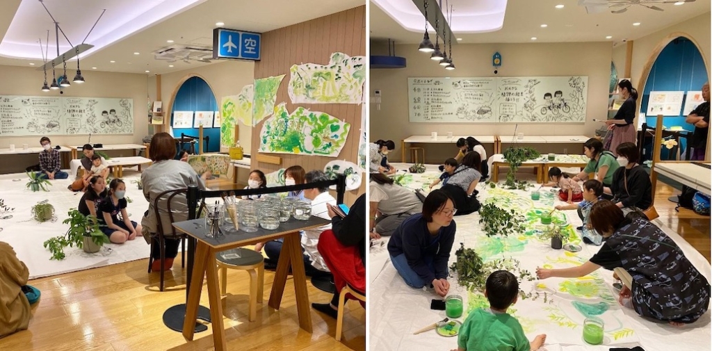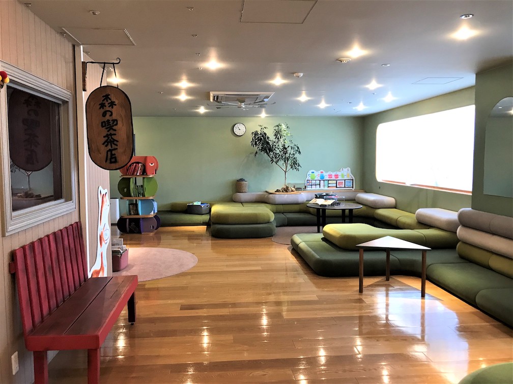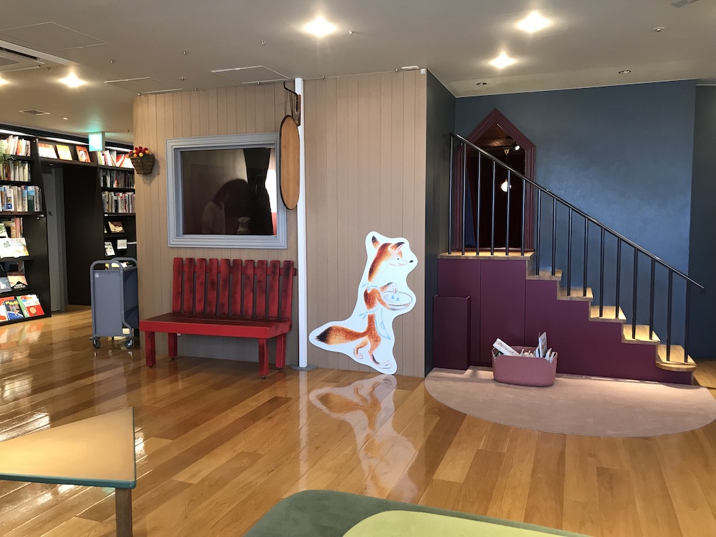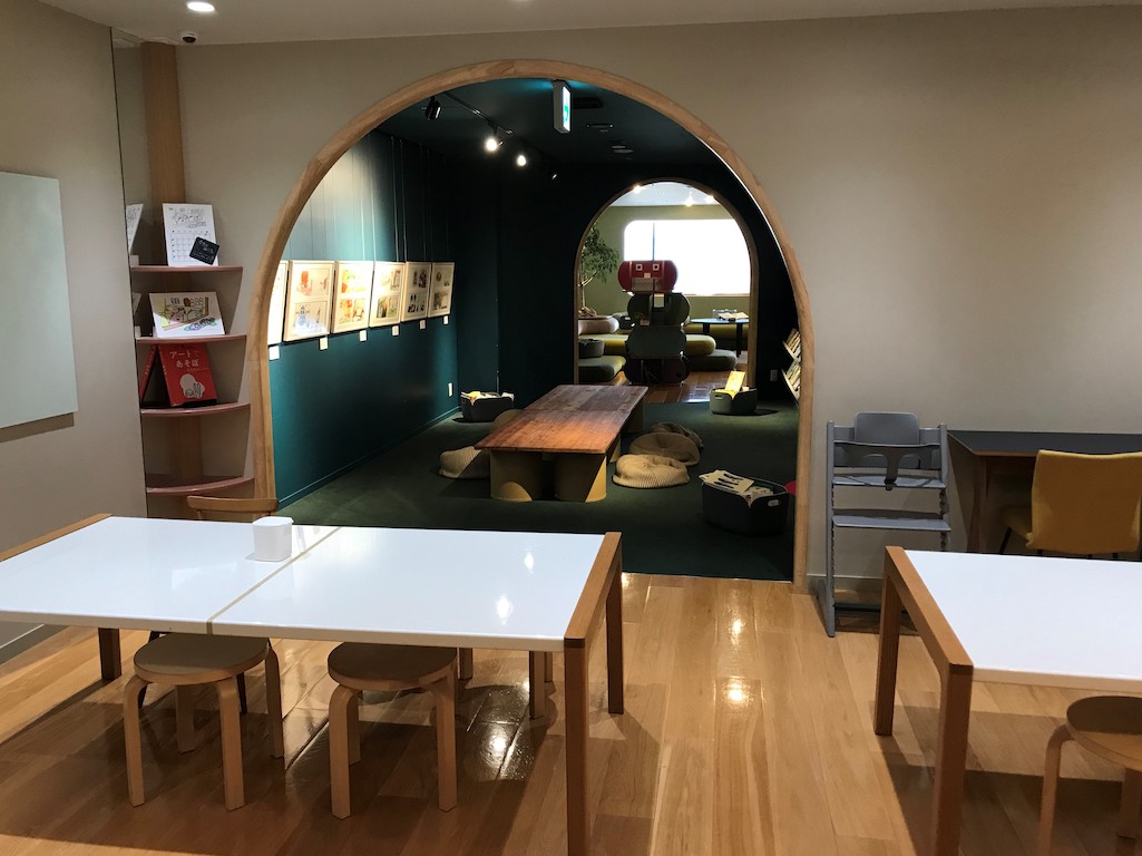 所以這裡的選書包含了繪本、漫畫、圖鑑、攝影集等「圖文並茂」的書,希望能引起還不擅於文字閱讀的兒童的閱讀興趣。書籍的陳列當然也與一般圖書館的十進分類法或是五十音順不同,而是按照自己設定的主題陳列,主題會定期更換。由於位處商業設施內部,館內難以感受到季節的變化,因此館內的裝飾會隨著四季變化。之前看到的照片有秋天的秋刀魚吊飾,不過我去的時間只有一些植物,不知道是否代表夏天。