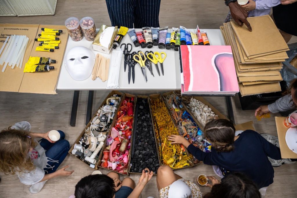 Tchusca Songo(”Hac-Sa: perdidos e achados”藝術家)做的工作坊:帶孩子們用她的創作方式來製作面具。