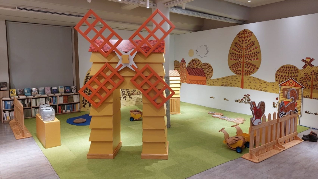 走進《母雞蘿絲去散步》的場景,感受懸疑喜劇的經典情境;拾起《有一個老太太她吞了隻蒼蠅》的拼圖,點點圖案大聲唱出經典兒謠;在《晚安,猩猩》迷你動物園裡,找到配對鑰匙帶動物一起出來玩;欣賞《小黑魚》運用蓋印畫團結起來一起擊敗大魚;玩《賣帽子》疊疊樂,練練抓握和平衡…。
