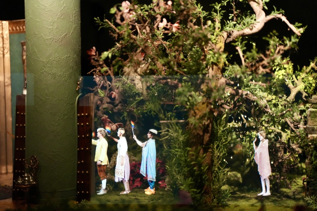 另一個我很喜歡的是「二選一的 3D 劇場」,你可以透過按鈕選擇劇情的發展,一整段故事總共會有五次選擇的機會,隨著你挑選的內容,玻璃窗內的故事就會有不同的走向,例如,公主被綁架了,她會透過哪一種方式逃脫呢?