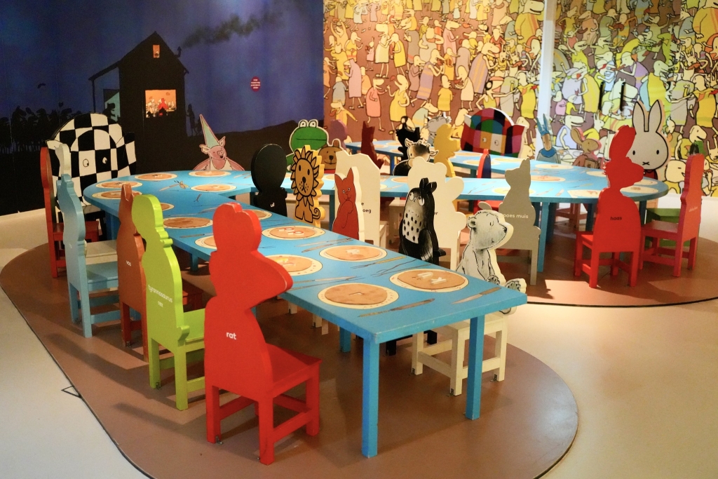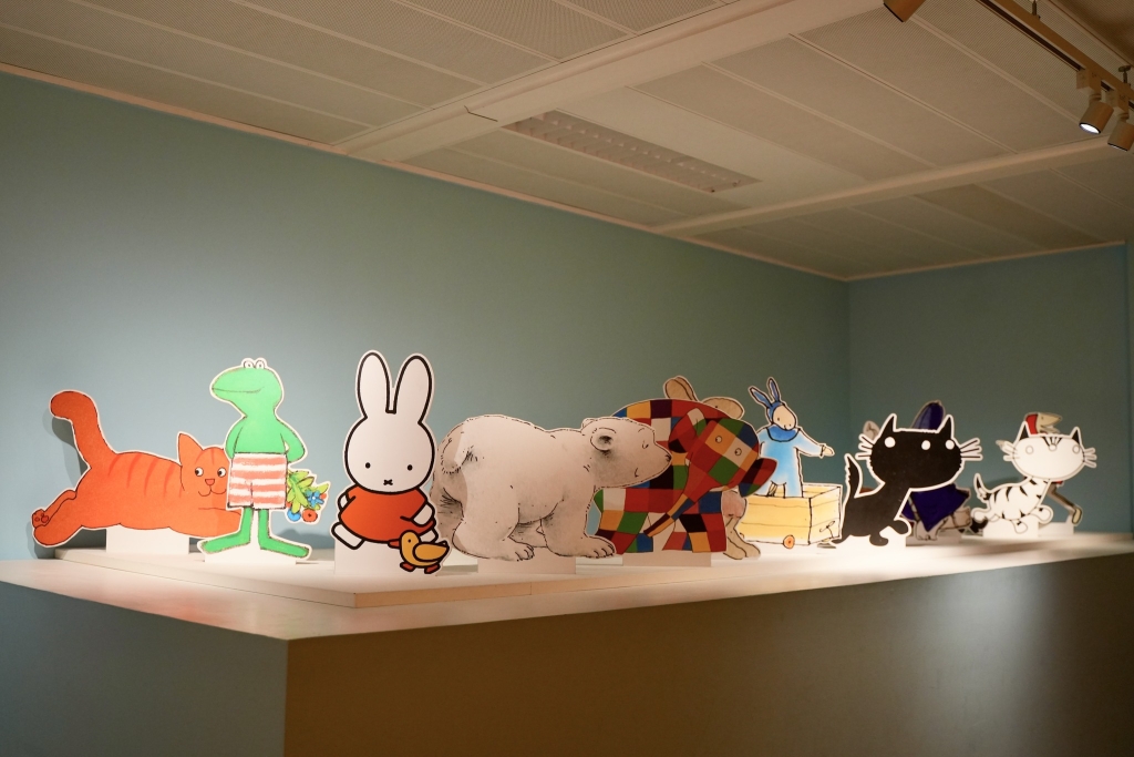 以《好餓的毛毛蟲》這站為起點,跟著地板上標示的字母動線,會依序前往不同的小房間(當然跳著逛也是可以),這些房間的登場人物都是童書界響叮噹的角色,像是米飛兔 Miffy、青蛙 Kikker、大衛麥基筆下的大象艾瑪,有些是世界知名的文學寶藏,有些是荷蘭當地備受愛戴的作品。