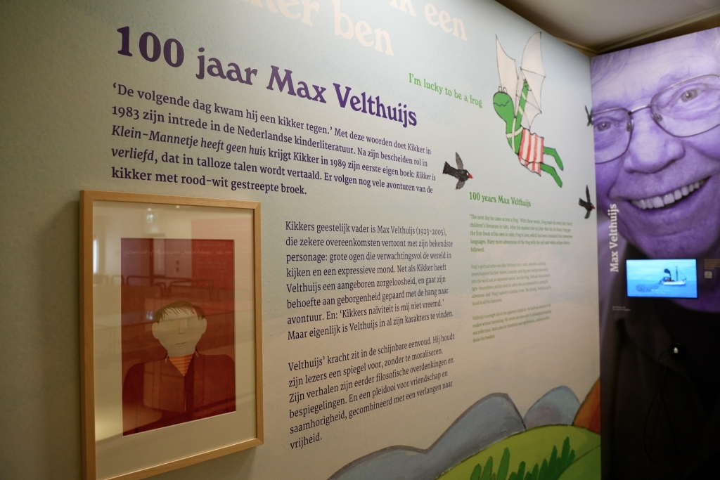 其中有好大一個重點區塊是留給前面提到的「Kikker en zijn vriendjes」(青蛙和他的朋友們),這部作品的創作者是插畫家麥克斯.維特惠斯(Max Velthuijs),他不僅是荷蘭家喻戶曉的作家,更在逝世前一年(2004 年)榮獲國際安徒生童書獎,而且他本人就出生於海牙呢!