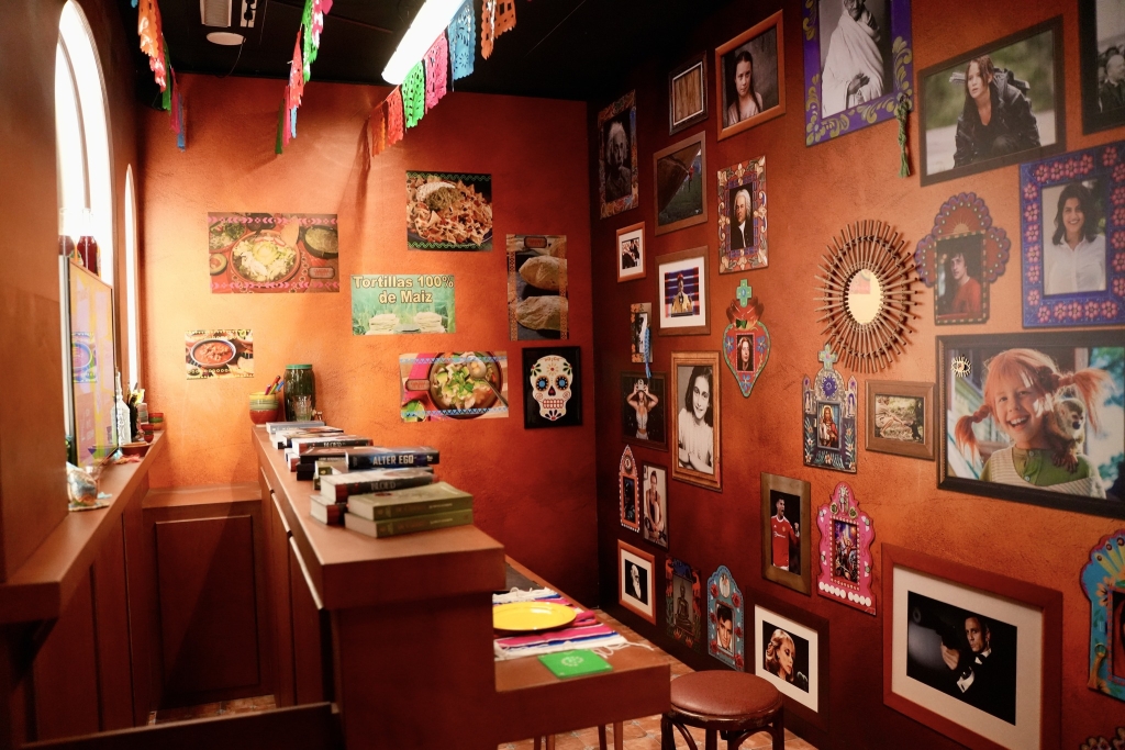 賭場、紋身店、健身房、豪華跑車……場景都超逼真的,又酷又帥,很符合年輕孩子的需求。我最喜歡的是最後一間中南美洲風格的小餐館,牆面的壁紙上有世界知名作家的肖像,像是安妮 ‧法蘭克、J ‧ K ‧ 羅琳,也有文學改編的影視作品劇照,例如《飢餓遊戲》的女主角凱妮絲、《長襪皮皮》裡的紅髮女孩,全都完美地融入佈景裡,怎麼有辦法如此用心?