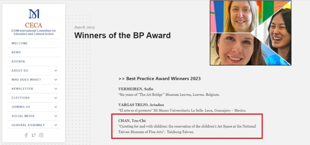 國際博物館協會教育與文化行動委員會(ICOM Committee for Education and Cultural Action,簡稱ICOM-CECA),是國際間最為龐大的博物館專業組織(ICOM)旗下歷史最為悠久的委員會之一。2012年起設立「最佳實踐獎」(Best Practice),鼓勵投身博物館教育的夥伴以創新的方法回應當下時局,讓世界各國彼此對話與交流,激發對博物館教育更多的靈感與想像。