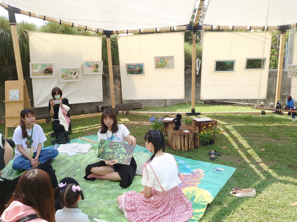 依著「黑熊花園」形象,順藤而上與《晚安,小熊》作者鄭潔文老師合作,四月份春季將繪本原畫結合戶外展覽,以「院子裡的美術館」為名的靜態與動態各式活動初試啼聲,讓民眾用輕鬆自然的方式接觸閱讀與繪本。