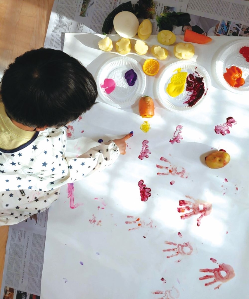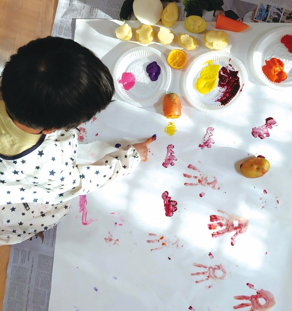 【適玩年齡 3歲】先沾後壓的蔬菜印章 用蔬菜盡情壓出形狀吧!