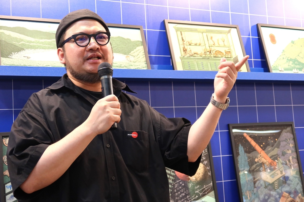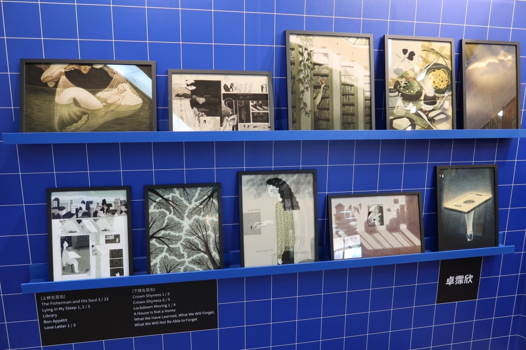 策展人鄒駿昇表示,策展取名為「Visual Fanzine」是一種雜誌愛好者的概念,展覽的形式,就像進入書店或圖書館內,可以在翻閱後短時間就得到完整資訊,而展覽內容也分為敘事型的插畫,以繪本呈現,15位創作者插畫就是自由創作,利用圖像來說故事。展覽主要目的,就是讓民眾可以認識更廣義性的插畫,至於展覽像個游泳池的搶眼視覺,他笑說,因為主視覺像是電音有衝擊感,而藍色可以在炎熱夏天,創造降溫的視覺感受。