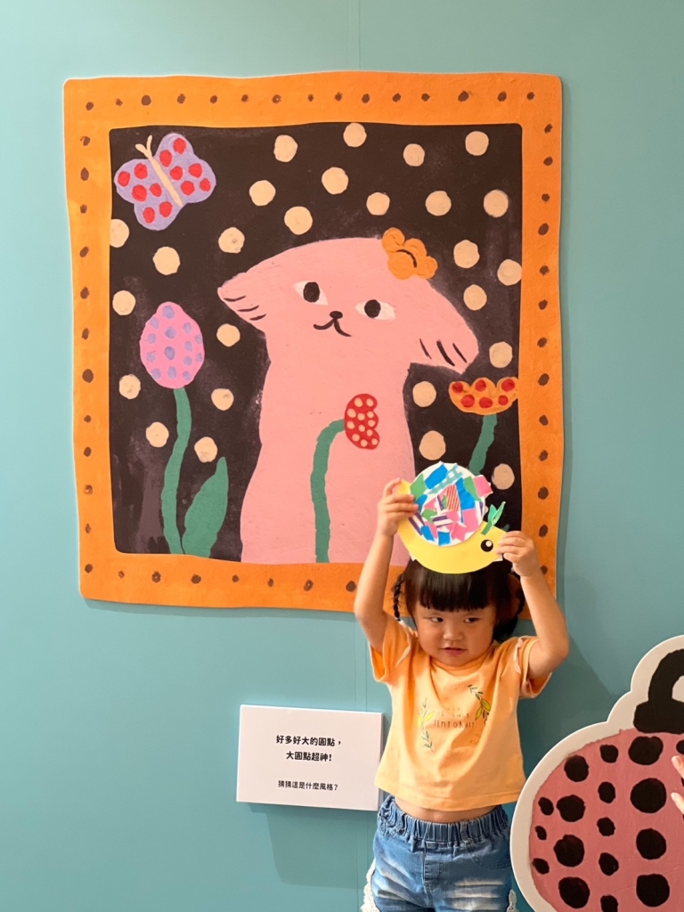 所謂的美感從小培養不是為了在小小年紀造就出一位畢卡索、一位草間彌生甚至是一位文森.梵谷,最大目的是讓幼兒學著欣賞這個多彩的世界、欣賞多彩的世界可以用不同的技巧表達、不同的技巧展現出不同藝術家的風格及專業、同時也可以是一種將情緒跟心情表達出來的方式。透過藝術突破傳統框架,樹可以是藍色的、天空可以是土黃色的。五官可以是朦朧的、眼睛可以是一上一下的、看來簡單的圓點可以是創作元素、大象便便也可以是創作的媒材!
