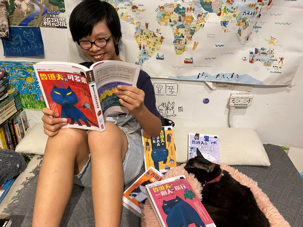 大家最近來書店,可能常看到我躲在書堆裡,和小時候愛熱鬧比起來,我變得比較喜歡默默看書,把想和大家分享的話會放在文字裡面,有時候會看到忘記時間停不下來,特別是遇到我喜歡的書時,像是我最近非常喜歡的《黑貓魯道夫》,這一套有五本的小說,有幾本我已經看了很多次,黑貓魯道夫的街頭日記完全是用貓的視角和口吻來說故事,這個方式和我之前也很喜歡的《邪惡貓大帝:克勞德》很像,但是我覺得魯道夫的故事更寫實一些,我很喜歡魯道夫和可多樂真誠又熱血的兄弟之情,也很喜歡為了人類家人努力學認字的米克斯,魯道夫和貓朋友吃的食物也都好好吃,讀著讀著我好像也變成了貓,想吃一尾秋刀魚了,喵~對於現在和人類相處會有些彆扭的我來說,和貓咪蹭在一起輕鬆容易多了,喜怒哀樂都可以更自由更簡單,很多煩惱也都會變得很輕,像貓毛一樣飄散了。