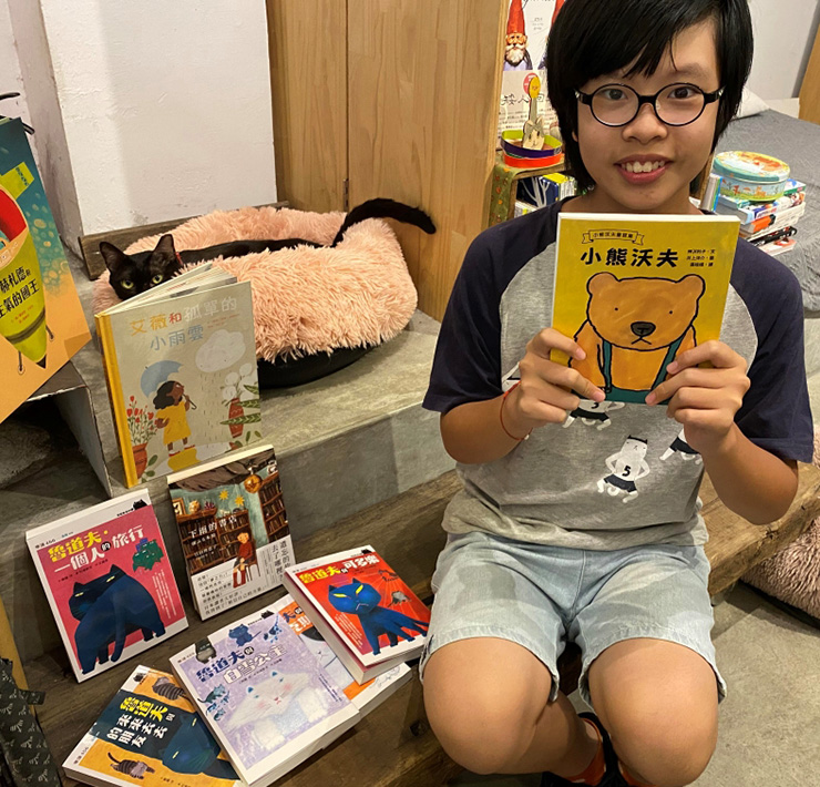 也許是我正在長大,所以會遇到各式各樣的轉變,有時候要花一點時間適應,要花一點時間思考,但是我還是很喜歡在書店裡讀各種的故事,那是我每天最珍惜的時光,我覺得我很像是《莎赫札德和生氣的國王》裡四處找故事、等待故事的莎赫札德,很享受在故事裡的想像世界旅行,每當獲得一個精彩的故事,就好想跟大家分享,讓更多人因為故事消除煩惱、不再憂傷,即使是那個愛生氣愛設下一大堆規定的國王,也難抵擋故事的魅力,書店裡常常有各種疑難雜症的讀者來問媽媽選書,我常會覺得很多的煩惱其實都可以藉由閱讀來治療,光是養成閱讀這個習慣就已經是很棒的一個藥方了,當然如果能讀到很多很棒的故事,那就不只是治療還是一種享受了。
