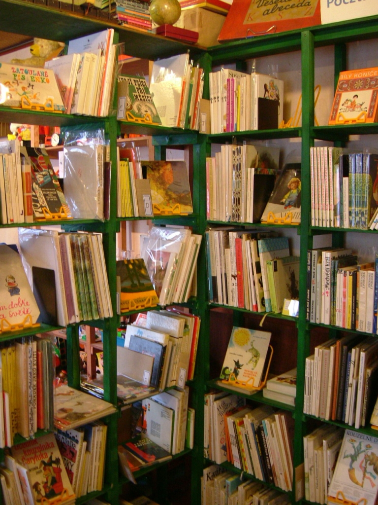 當時的店面位在神戶的中華街上,大約兩面的書架上擺繪本,剩下的空間則是擺滿玩具、碗盤、布料等各種雜貨。我跟店長稍微聊了一下,他說他每年會去捷克一、二次,每次都寄個幾千本回來。那時我在店裡選書選了很久,畢竟是我第一次買完全看不懂文字,又是十分陌生國度的繪本,最後買了七本,是我踏入共產時期繪本收集之路的啟蒙店。