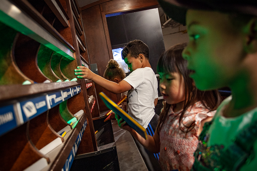 離開隧道,還有很多精彩的互動裝置等著我們!例如,館內特別設置了模擬郵務人員在火車上分類信件的工作情形,並限時計分,考驗大家是否能在搖晃的環境中,快速、有效率地達成任務,十分有趣!