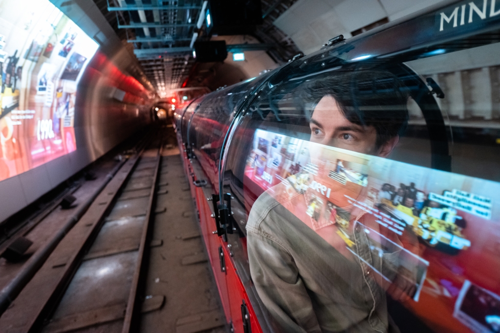 搭乘途中,車廂內會播放語音導覽,導覽員介紹著無人駕駛的小火車在運送郵件時,如果遇到隧道停電、淹水,操作員該做什麼處置。我們還可以看到地下郵政鐵路的工作月台,月台牆上的投影動畫則呈現倫敦的郵政歷史及郵務人員工作情形。動畫一開始出現大幅的倫敦地圖,讓觀眾清楚知道這長達10公里的地下隧道運送路線,接著出現的是快速遞減的年份數字,彷彿時光倒流,帶領觀眾重回英國郵務量蓬勃、小火車被密集用來運送信件的光榮歲月。
