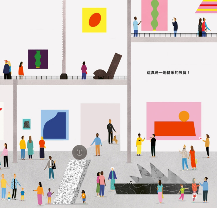 在準備2022年的兒童策展工作坊時,意外發現了《打造一場精彩的展覽》原文版。沒有艱澀的知識,出生藝術家庭的作者和繪者,創造了兩位截然不同的藝術家角色,透過鮮豔色彩與簡潔造型的畫風,娓娓道來一檔藝術展覽的成形。
