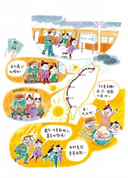 《貓‧妮妮 一起玩》內頁。冬天:從很冷到很熱。