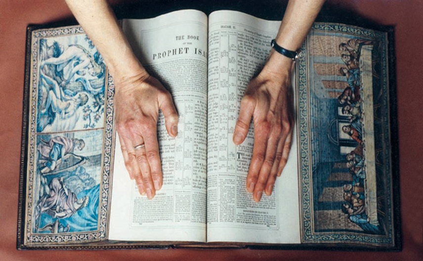 在那個神權的年代,為使大多不識字的民眾了解聖經的意義,所以將福音的內容製成具有視覺衝擊的畫作,是很重要的事,而書在這些圖像裡,便是個能代表上帝的重要符號。