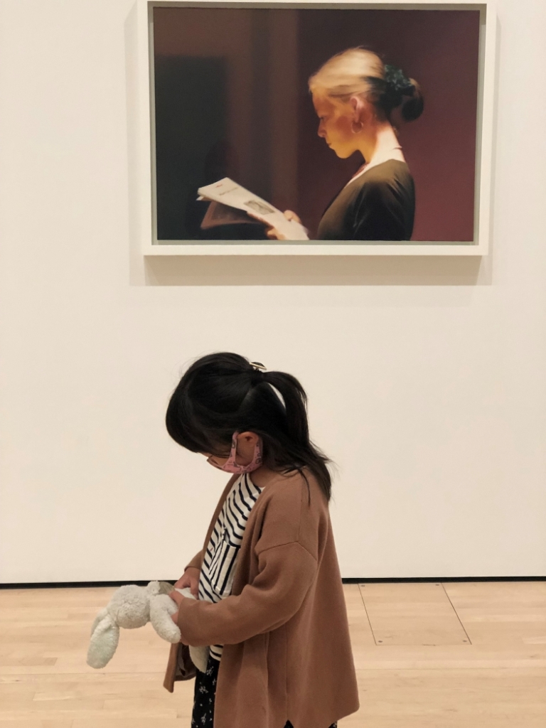 圖右/Gerhard Richter,the Reader,1994。當今身價最高的當代畫家之一——李希特。雖說他多為抽象畫,卻仍畫了一幅他閱讀的愛人妻子!另外照片的人是我女兒,也是我的愛。 這張照片之前也曾被SFMOMA意外選中過😆。