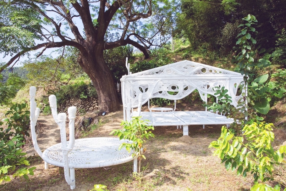 開車進入大窩的路上,首先會看到大樹下一座白色繩子編織出的涼亭,這是由來自屏東好茶部落藝術家Eleng Luluan安聖惠的作品《編織記憶》。特地選在客家村伯公廟大樹旁,是在地居民稍作休息或吃點心的場所,不但是居民的信仰中心,更是交流情誼的活動中心,也是每個人都有難以忘懷的美好回憶。大朋友們不妨脫下鞋子趟在上頭,閉上眼睛,感受山林的寧靜與微風。若是親子出遊,活潑的小朋友們,也可以爬上爬下更密切跟作品互動。(但請大小朋友注意好好愛護作品喔!)