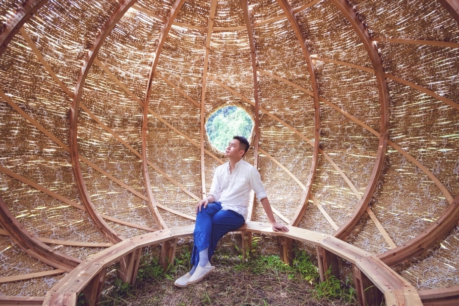 這是來自新竹竹北客家聚落的藝術家范承宗,把古時候用來保溫茶壺的「茶壽」大變身,待在裡面是不是也是一樣溫暖呢?