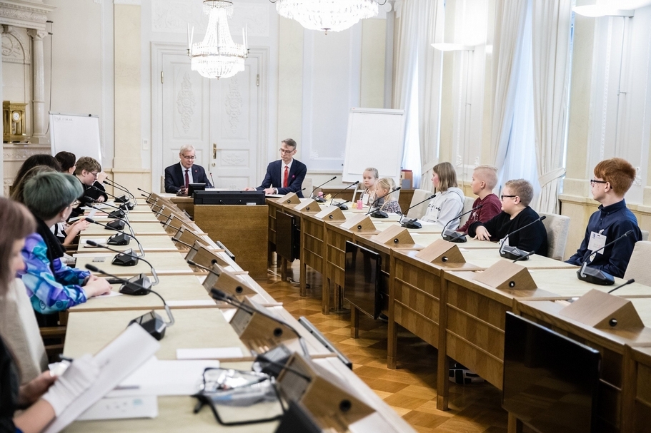 孩子們在國務院與部長座談(照片來源:Lapsen oikeudet)