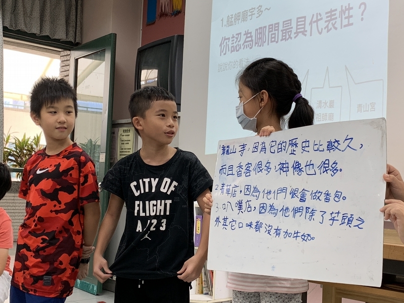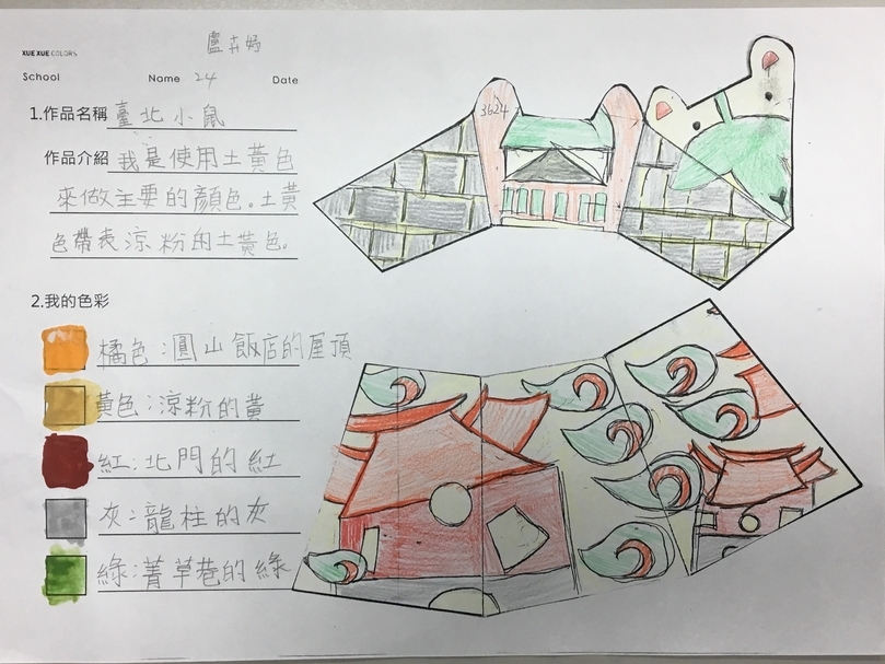 臺北市永安國小的同學從龍山寺回來後,發現要從那麼多採集回來的資料,只選出五個顏色,是一件非常不容易的過程,必須不斷的回想、說明、討論和對話,但也因此學到更多面對和解決問題的能力。