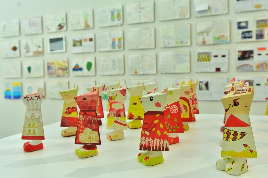 決定好顏色後,接下來的任務,就是運用學學邀請臺灣抽象藝術家莊普創作的生肖陶瓷小素胚「小感動鼠」(2020年)來創作囉。要畫什麼?怎麼畫?才能延續表現各個區域特色的概念呢?