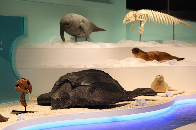 策展人、科博館地質學組研究員張鈞翔博士推薦不可錯過的看點展品,包括有美人魚之稱的「海牛」標本、最古老的動物胚胎化石、寒武紀大爆發的明星動物「微網蟲」、海中瑰寶最大海龜「革龜」、鯨豚重新下海的關鍵證據「龍王鯨」、翩翩起舞的海底「三葉蟲」、美如詩畫的巨型「海百合」、鱗片排列奇特的「直鱗魚」、不可思議的巨大「鈎菊石」、炫彩奪目的「彩斑菊石」。