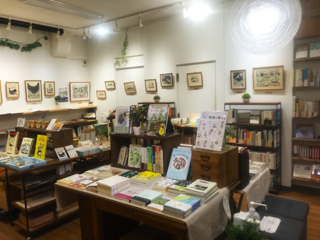 第一間「蓬BOOKS(よもぎBOOKS)」位於三鷹,從南口沿著中央通步行約15分鐘。書店位於日生三鷹大樓的二樓,兩端有樓梯直接連接二樓走廊,六月去的時候在附近徘徊很久,才發現原來書店在這棟建築物裡。二樓是一個賣場,走完一圈之後才找到蓬BOOKS,站在門口良久才確定當天公休,只好九月時再跑一趟。這間書店沒有固定公休日,每個月的休息日會公告在網站及推特上,要去之前務必先確認營業日期。