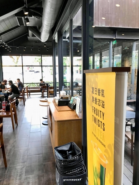還蠻有趣的,在台北市內湖區,民權東路的轉角,找到第一家綠建築的咖啡店。後來知道從空地自建開始,整地、建材選擇、結構設計、空氣循環系統、綠化植物、屋頂斜率,甚至小到施工廢棄物與垃圾回收處理,皆在LEED認證規範下進行。門市室內融合心靈花園Corner Park理念,並使用手作瓦楞紙燈具與台灣在地楠木及孟宗竹製家具,紙吸管從內而外落實環保,響應世界地球日50週年。