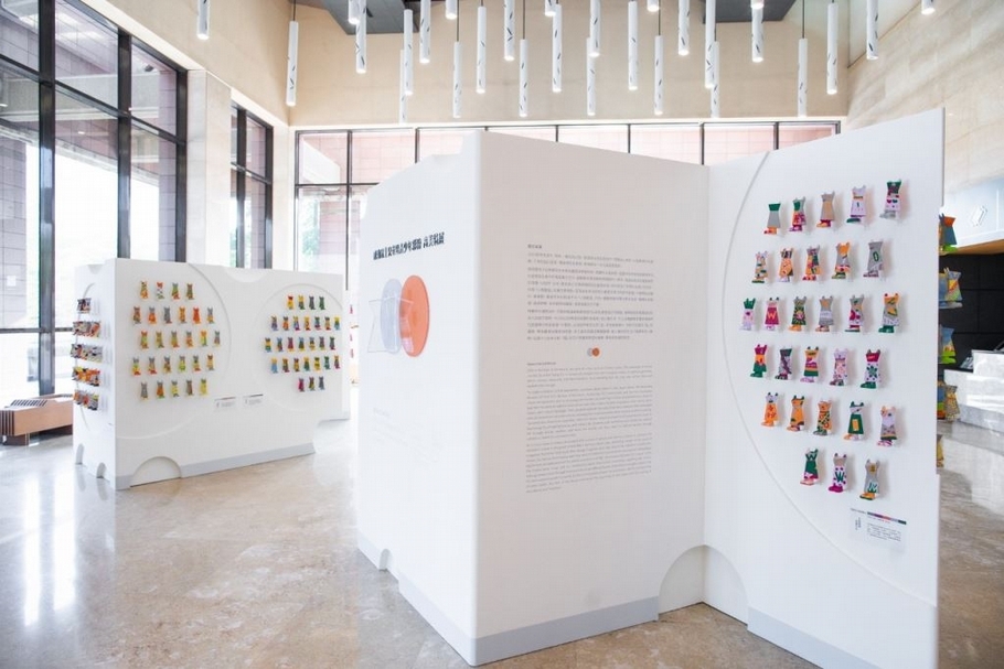 展場設計延伸莊普感動鼠素胚造型,運用幾何線條設計鼠造型的展台
