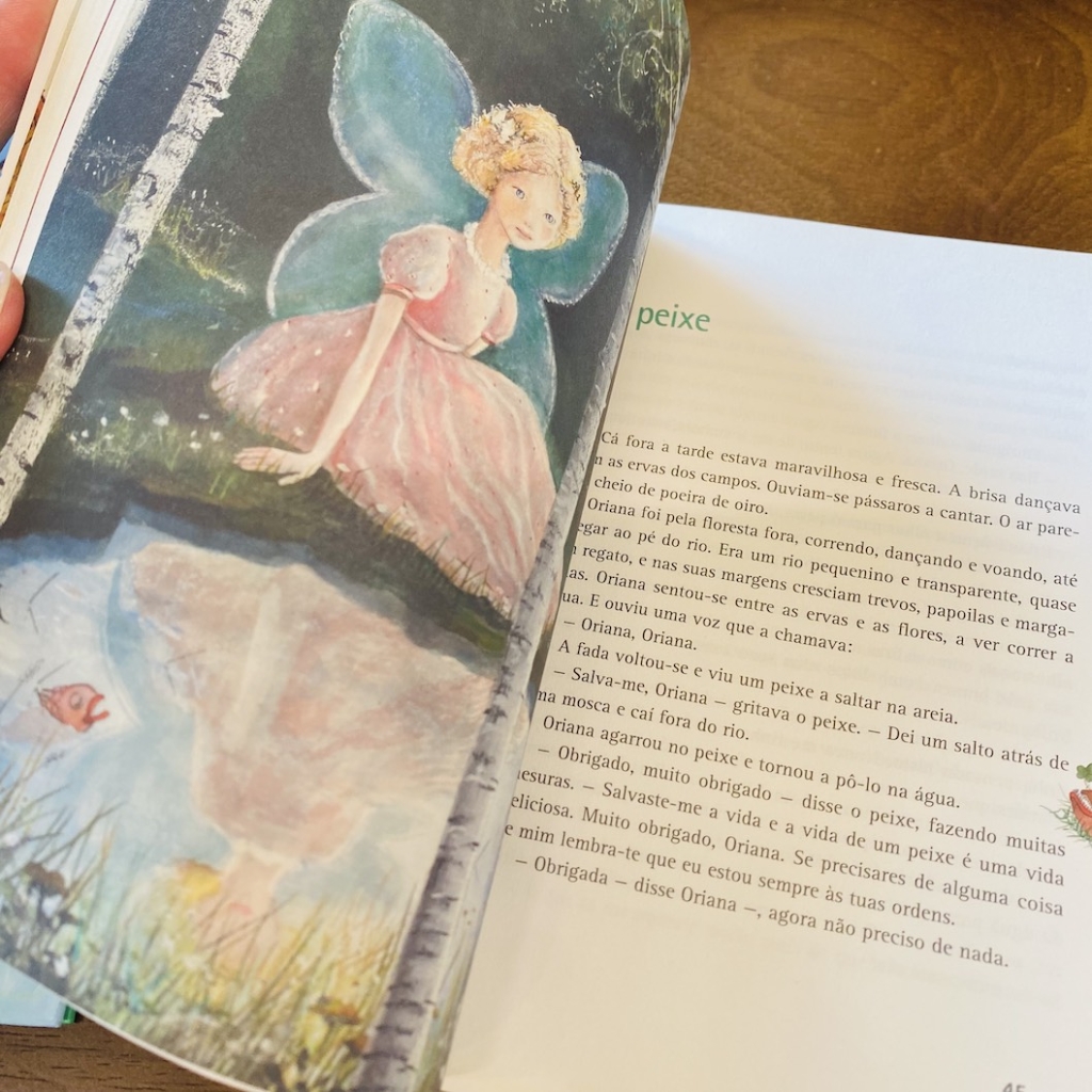 葡萄牙詩人、兒童文學家索菲亞・安德森《奧麗安娜仙女》(A Fada Oriana),有一天,小仙子奧麗安娜救了一條魚,她不小心看見自己在水中的倒影,此後便沈浸在自己的美貌之中。奧麗安娜日日忙著裝扮自己,完全忘記她要照顧的一切,忘了照顧動物、忘了澆花、忘了磨坊和樵夫,忘了所有等待她的人、動物和植物,也忘了詩(詩人)。奧麗安娜深陷在魚兒的讚美中,於是仙后奪走她的翅膀與魔法。沒有了翅膀,她若要去見到那些呼喚自己的人,就要自己追尋,若要施展能力去幫助他們,就要仰賴自己最初的能力。