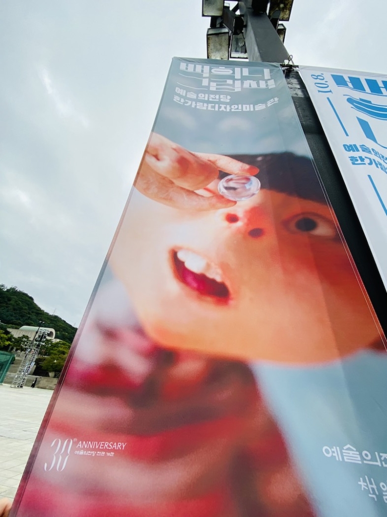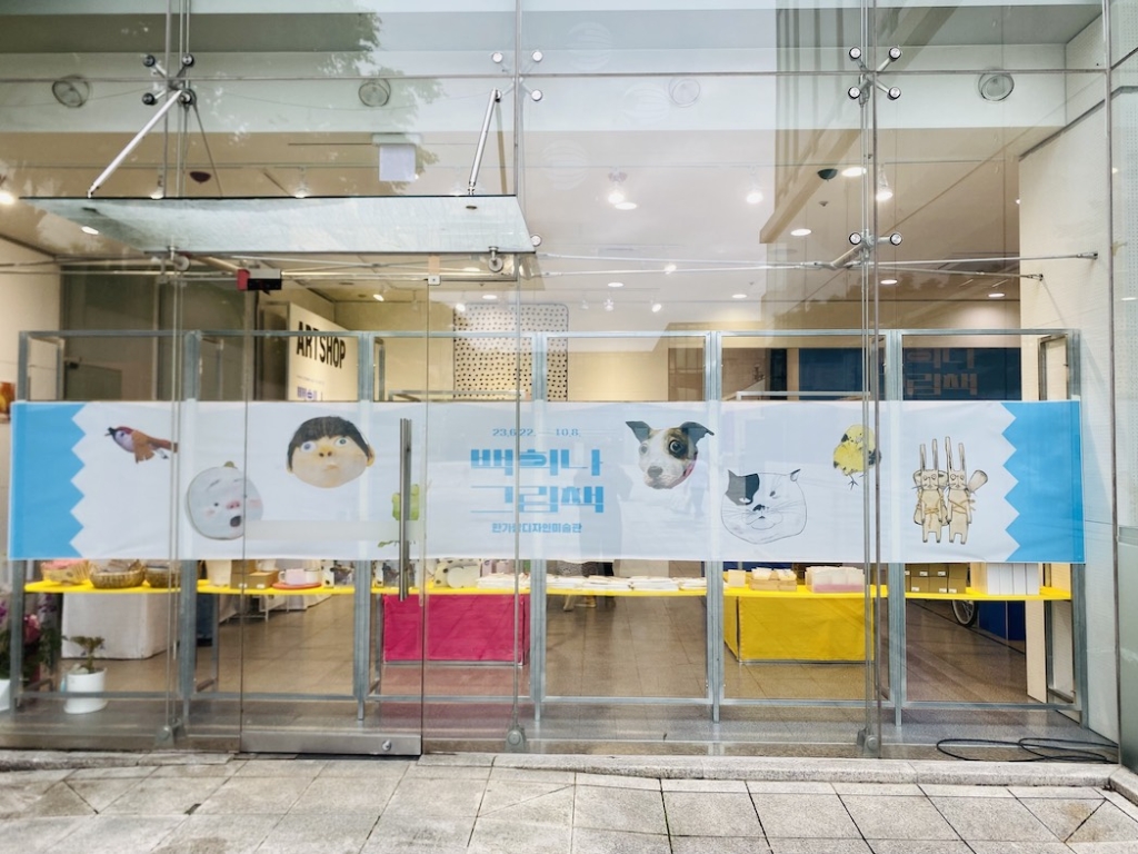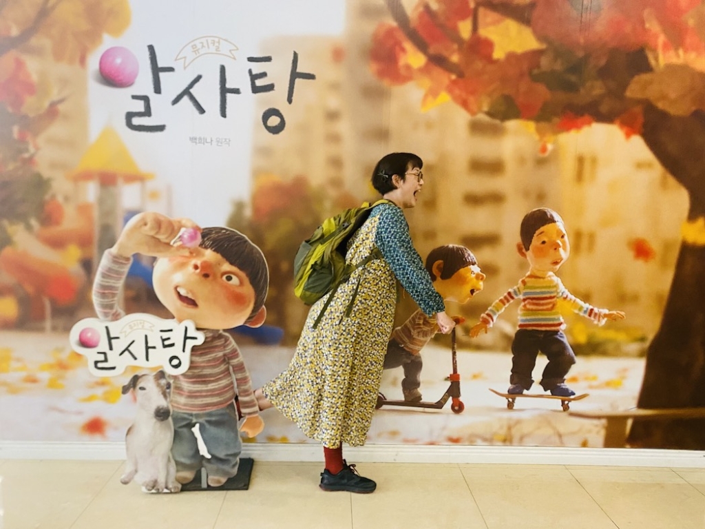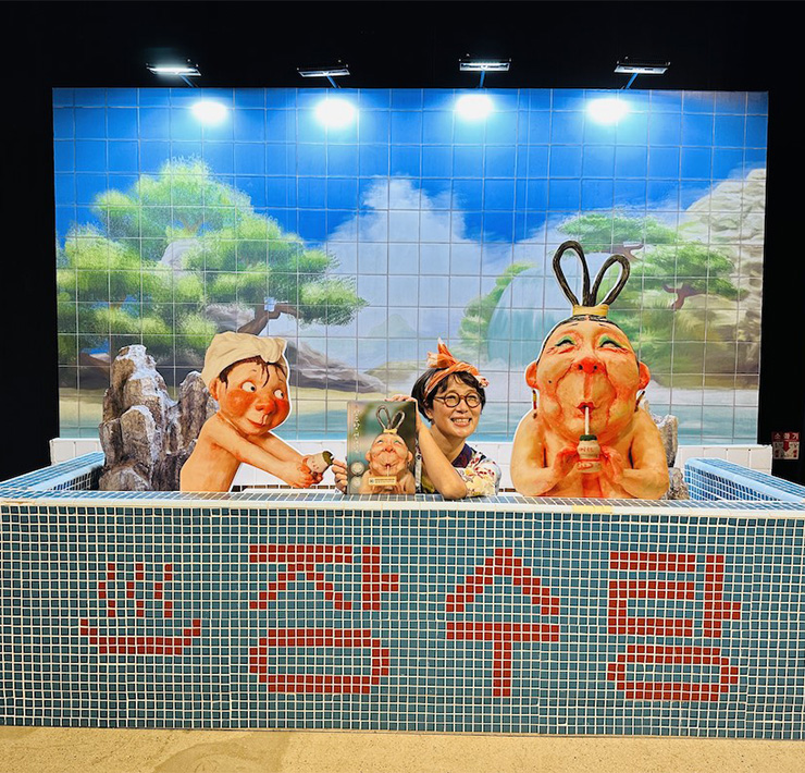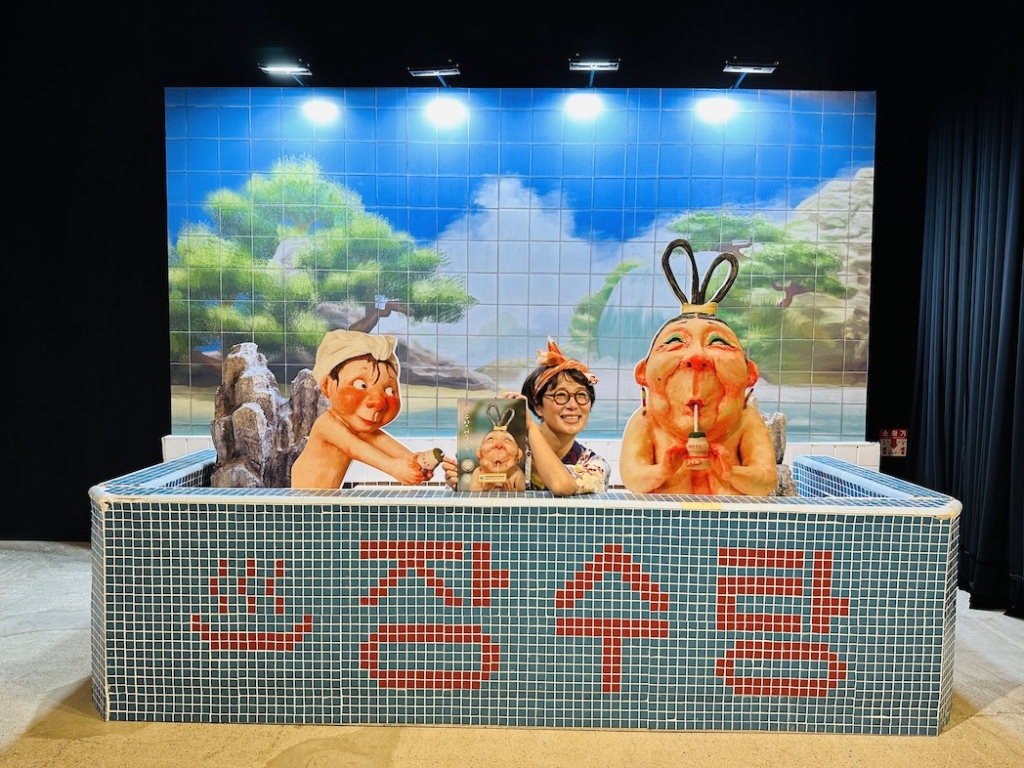在首爾藝術中心的白希那個人繪本展,其中《長壽湯仙女》的展區,做成澡堂的模樣,仙女婆婆在浴池裡泡澡(還冒著煙咧)。