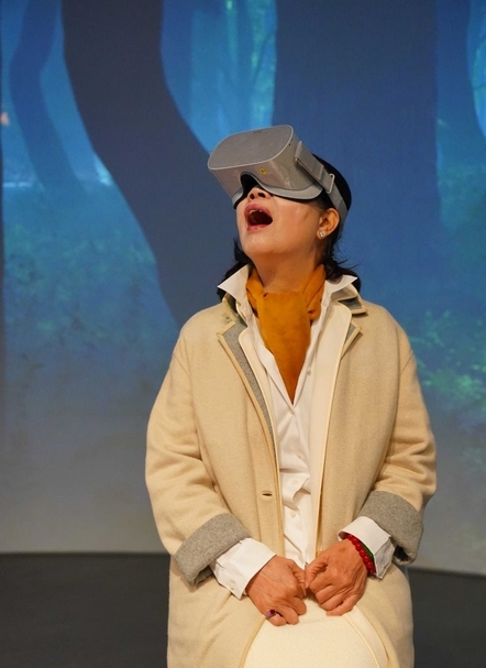 「傳說在很久很久以前,臺灣雲豹和黑熊是好朋友…」戴上頭戴式虛擬實境VR眼鏡,跟著神話傳說故事置身於臺灣山林裡,擬真的3D臺灣雲豹與臺灣黑熊穿梭、環繞在四周,搭配生動的聲音效果與細膩的動畫製作,身歷其境體驗臺灣雲豹重返山林的想像。你可能從沒想過,雲豹與黑熊的叫聲竟然類似鳥和狗的聲音,如果在森林裡聽到,可能沒有多少人會知道,猛獸就在你身邊。