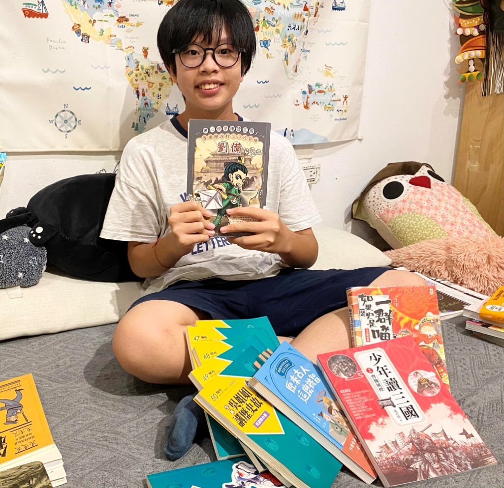 最近我在讀《用心理學趣讀三國!善用眼淚打江山的梟雄—劉備》,它是用心理學家的角度來討論三國故事裡的歷史人物,作者在序裡提到:「心理學家認為從來不存在絕對真實的歷史。」所有的歷史和故事都是人記錄撰寫的,所以會放進去自己判斷的觀點,用心理學來討論三國歷史人物,也可以是另一個很有趣的觀點,這裡提到的劉備有他的膽小和野心,也會迷惘虛榮,在人物的描寫上更深入詳細,而且有心理學來佐證的觀點,例如:桃園三結義的友情能夠如此堅定深厚,並不是劉備用他的才華魅力或仁義之心收服兩個兄弟,而是因為他們長期親密無間的「食則同桌,寢則同床。」在心理學的研究中長期近距離的肢體碰觸,可以激發出彼此的信任與喜愛,所以我和宅徽天天吃睡都在一起,感情一定也像桃園三結義一樣深厚!雖然這本書很多學術專業的說明對我來說有點難,需要多花一點時間思考和爸媽討論,但我覺得這也是讀歷史很過癮的地方,可以「旁敲側擊」更多不同領域的知識,是一個走進去就走不出來的大迷宮,要讀更多書來找答案,可是又會因此找到更多的問題,我想喜歡看書的朋友一定也懂我在書堆裡感受到的「無限迴旋」,歡迎你們也一起加入我的歷史故事大迷宮吧!