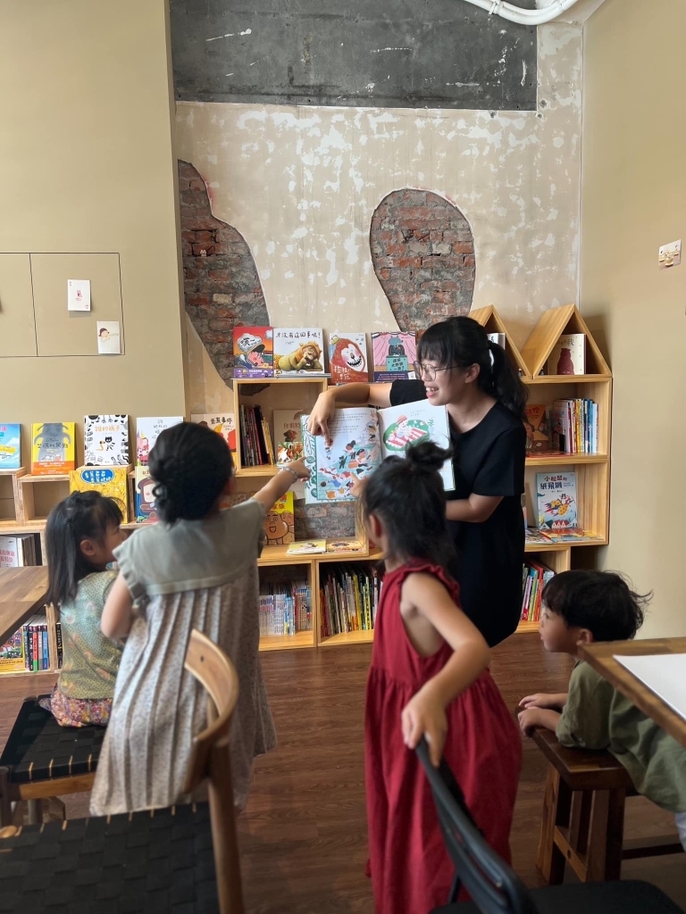 SusuBooks是位於彰化社頭今年春天新成立的繪本書店。隱身在二樓的空間,復古質感的木製書架上頭,除了大量店主精選的繪本,還有錯落文學藝術類型書籍,瀰漫沉靜的慢慢閱讀氛圍。曾於政大書城工作過的書店職人背景,店主Susu一手規劃、物色傢俱、從無到有,牆面斑駁磚塊與木質陳設無違和的合拍,各處角落充滿店主童心的小巧思,靜待讀者去發現探索。