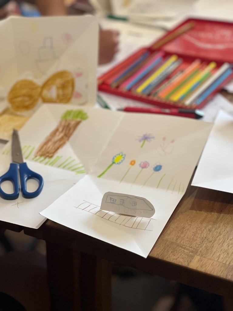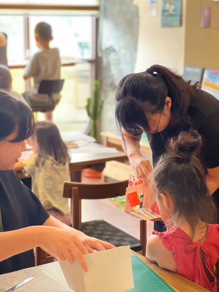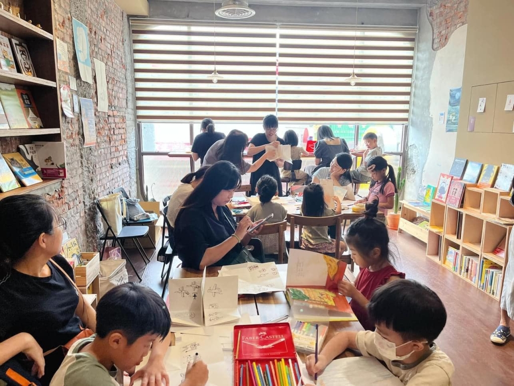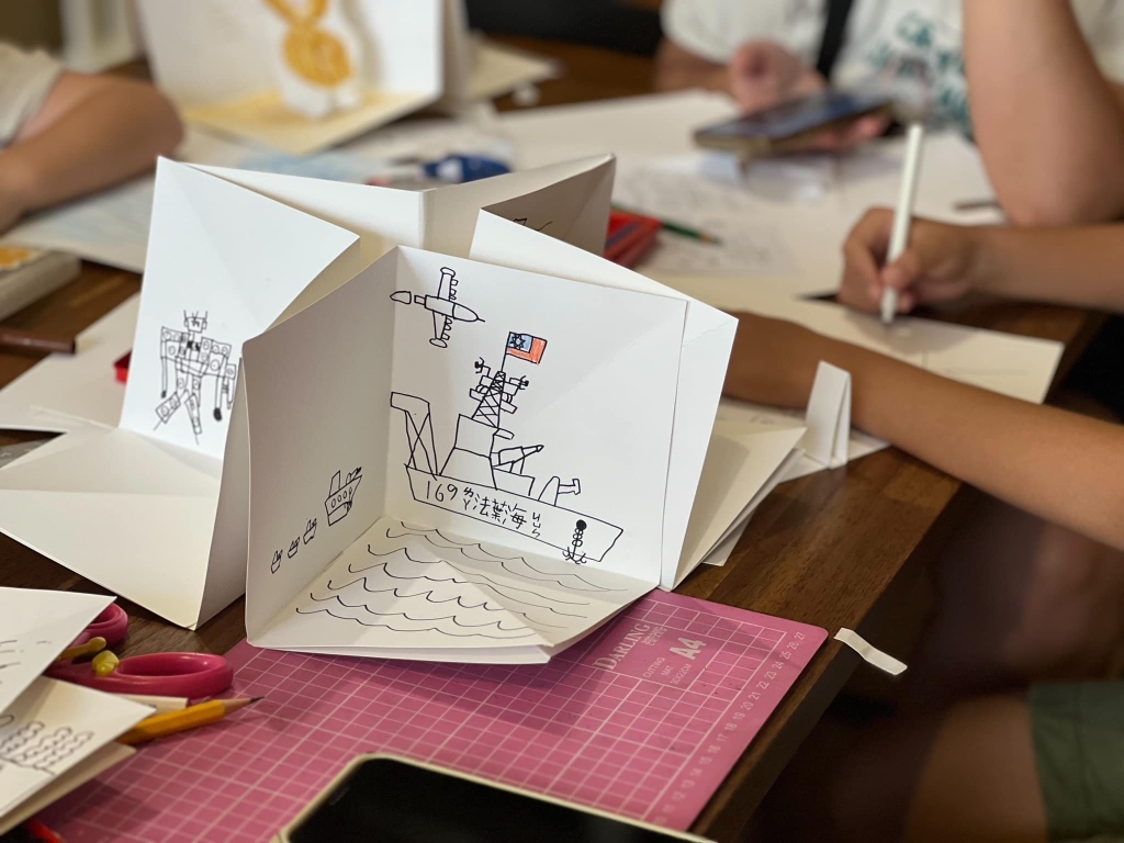 活動當日,作者吳欣芷以繪本《園丁小花狗》的故事開啓聚會,接著一步步帶領大朋友和小朋友,用西卡紙做成小書,再增加立體感的角色,特殊的四面造型卡片創作立體花園小書特殊的四面造型卡片。每個人都能創造出心中獨特的世界,動動手、畫畫圖,在SusuBooks共度充滿想像和手作的秋日午後。