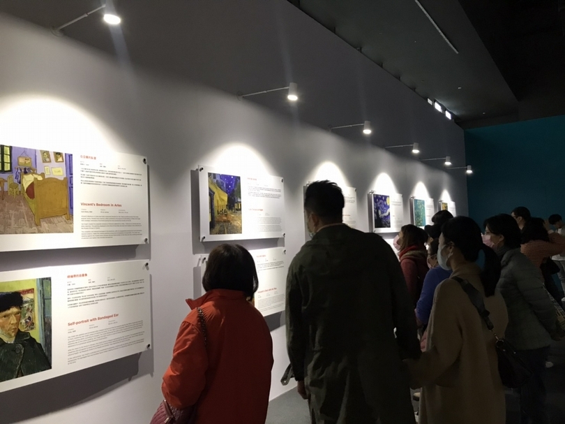 展覽前段先透過靜態展示《向日葵》、《星夜》、《麥田群鴉》、《盛開的杏樹》和《紅色葡萄園》等 13 件最膾炙人口的作品介紹,就算不熟悉梵谷作品的觀眾,也可以有個初步概念。