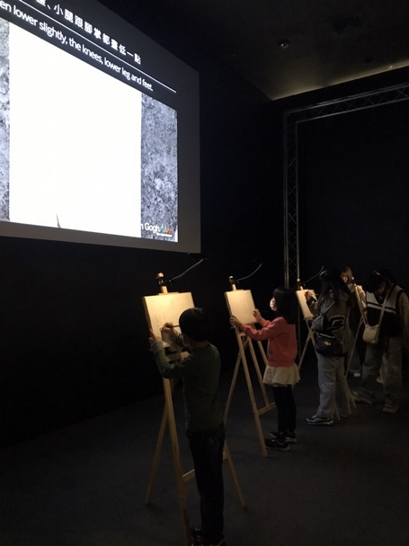 最後的互動區,是適合全年齡一起共同參與的「繪畫區」,透過投影方式讓大家一步步畫素描,並提供畫架和紙筆,一起互動臨摹,最後還可以把素描畫作帶回家。